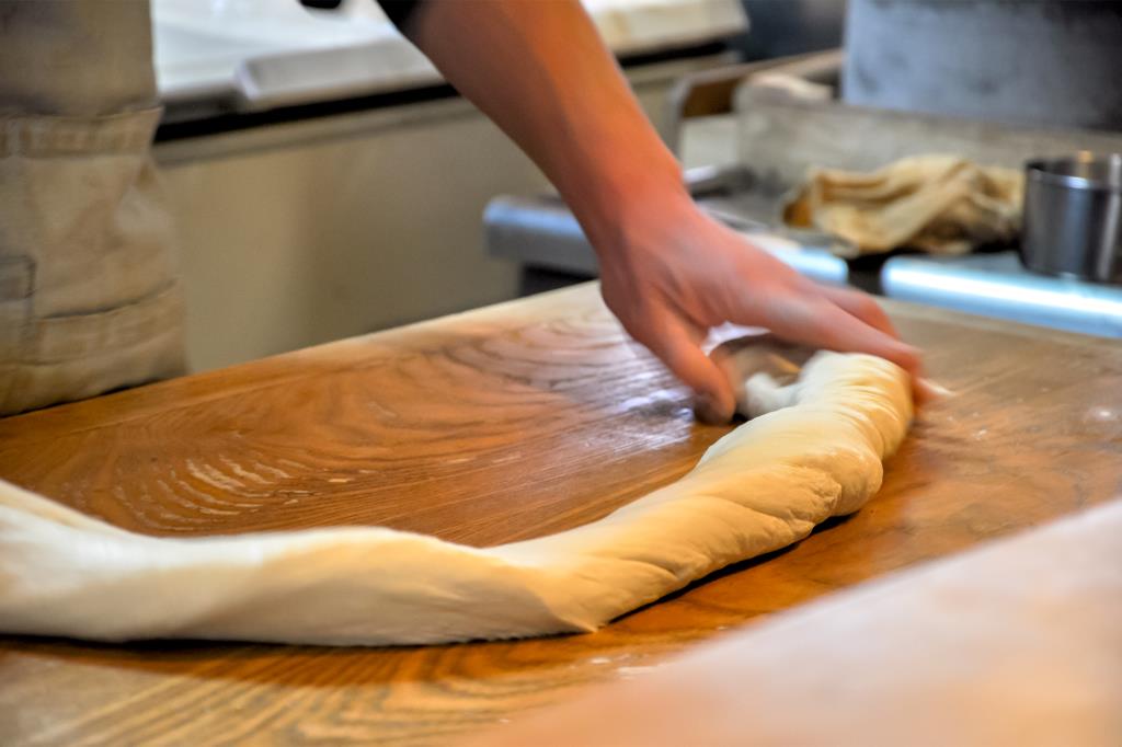 自家製の天然酵母でじっくり発酵した手延べうどんはモチモチした食感とコシ、噛む程に味と風味が口に広がる。