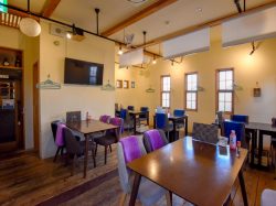 山梨県の食材を使った料理や、ほうとう、馬刺し、鳥もつ煮などの郷土料理を味わうことができる。