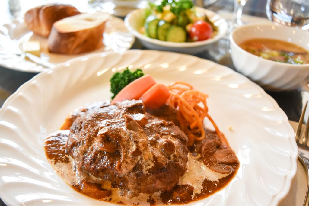 人気メニューはハンバーグステーキ。毎日店主が丹精込めて仕込みをしている。コース料理もあり、予算に合わせて相談もできる。事前予約でパーティや貸切もOK。