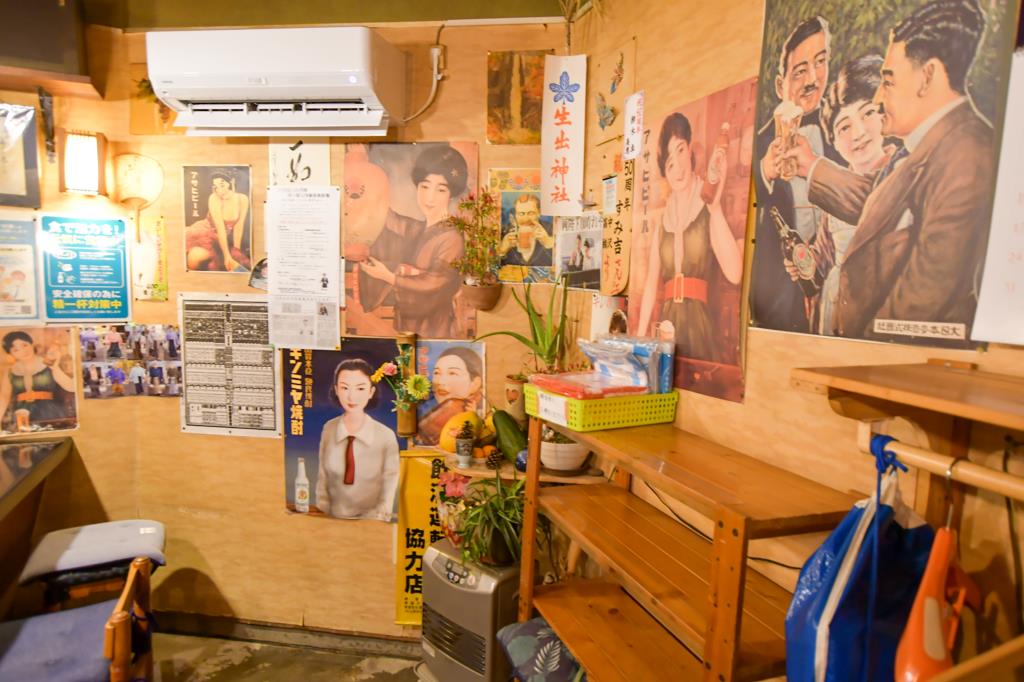 親子2代に渡り50年以上続くお店は昭和レトロを思わせる店内になっている。所狭しと昭和時代のポスターが張られ雰囲気も抜群♪