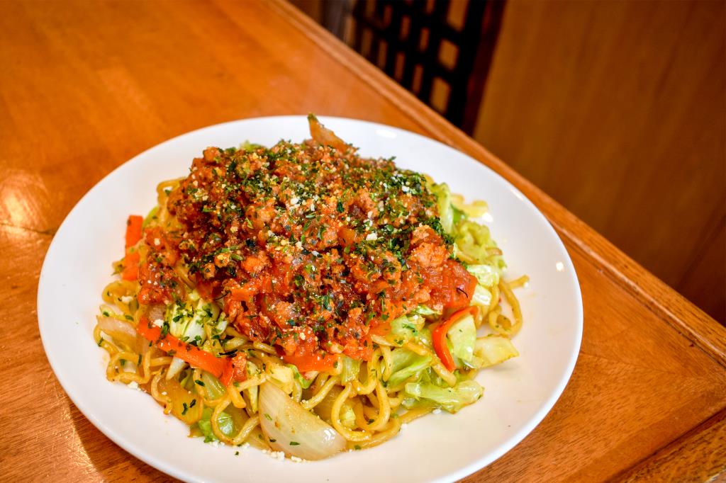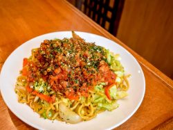 中央市の特産であるトマトを利用した人気の「青春のトマトやきそば」は、爽やかな味わいの中にしっかりとしたコクがあり、自然と箸が進むおススメの一品。