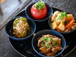 酒場あっち名物のひな鶏半身揚げをはじめ、おばんざいやお刺身などその時の旬の食材を使った料理を味わうことができる... -