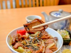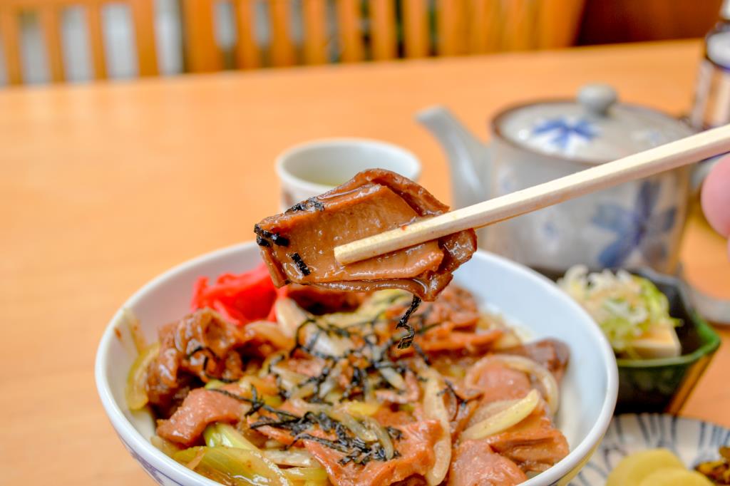 人気メニューはもつ丼。じっくりと煮込んだやわらかいモツを再度甘辛く調理して丼に。ご飯がススム一品。