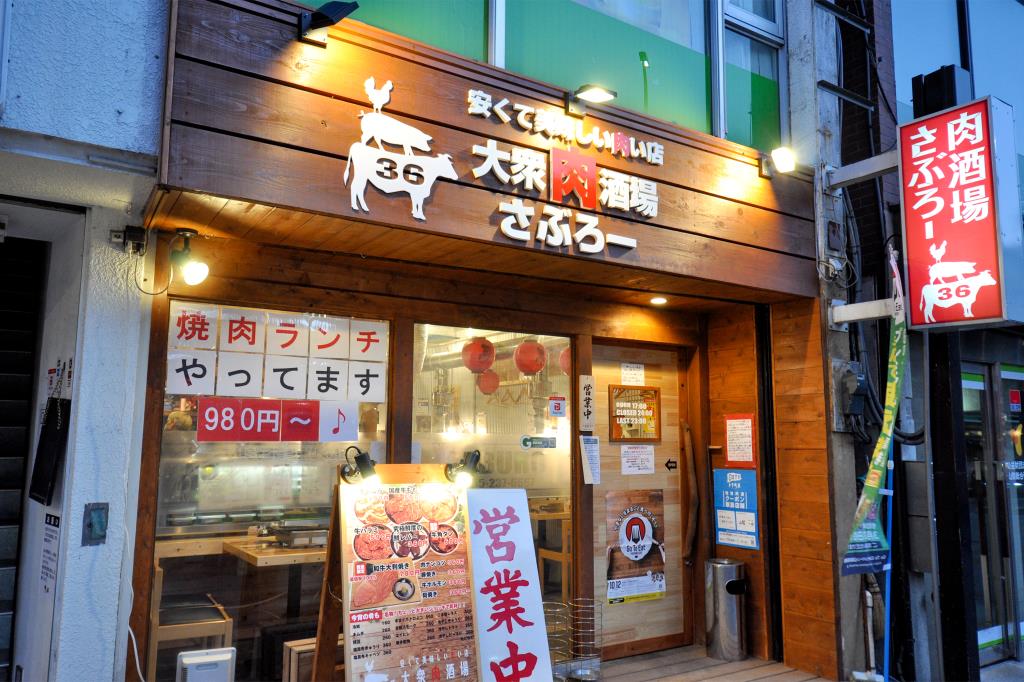 甲府駅前2020年10月にオープンした「大衆肉酒場さぶろー」。