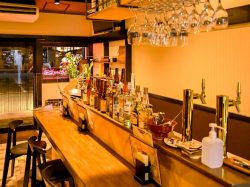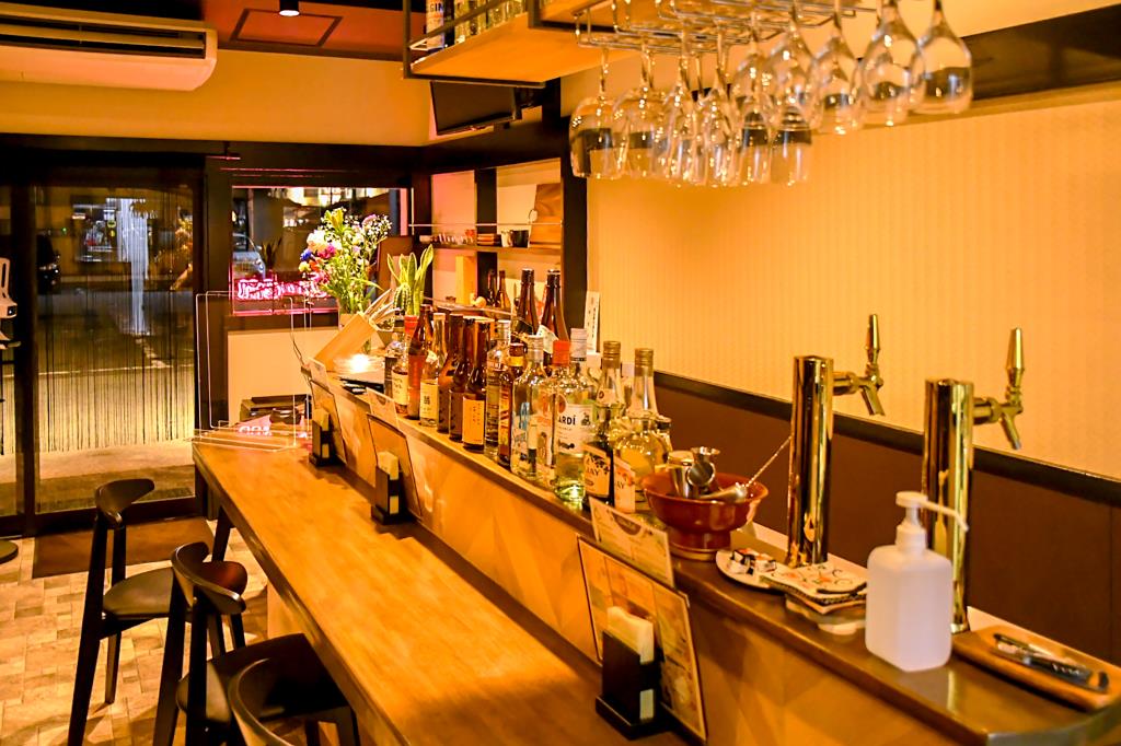 ゆったりとした時間がなれる店内はダウンライトの落ち着いた雰囲気で静かに料理とお酒を楽しめる。店の自慢は常時50本以上を取り揃えるワインの数々。山梨県産のワインやヨーロッパ各国のワインも楽しめる。