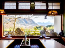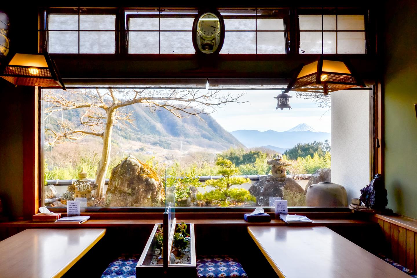 料理だけでなく、大きな窓越しに映される富士山に圧倒される。県外からもこの絶景と料理を求めて来店するリピーターも多い。
