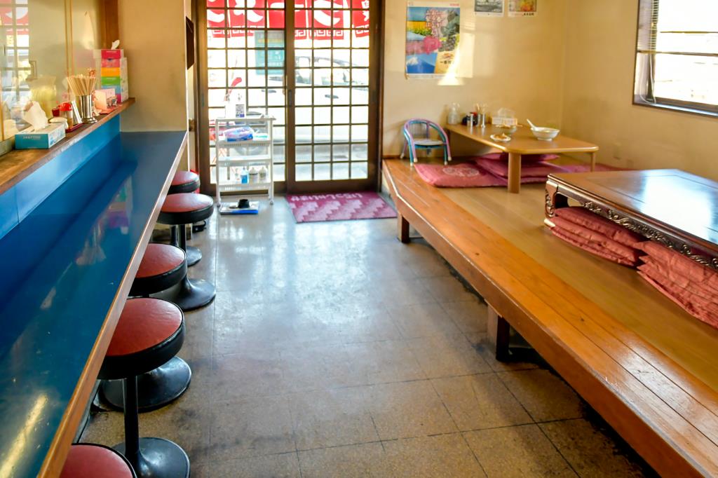 店内は厨房が見えるカウンターと座敷が数席とこじんまりしており、厨房からはご主人の振るう中華鍋の音かが心地よく響く。