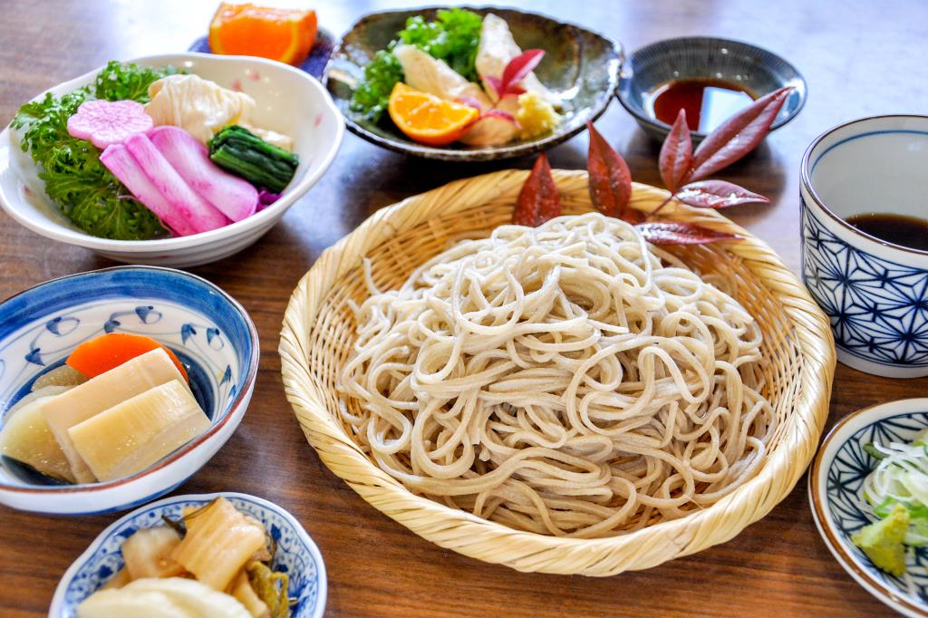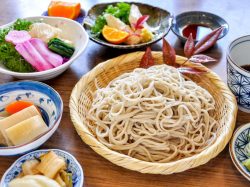 店主が毎日丹念に打つ自慢の手打ちそばは、無くなり次第終了のこだわりの逸品。その他ゆば等の郷土料理や四季折々の旬の手作り料理を楽しむことができる。中でも店主自ら採る天然の山菜料理は外せない。