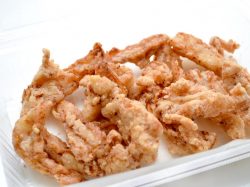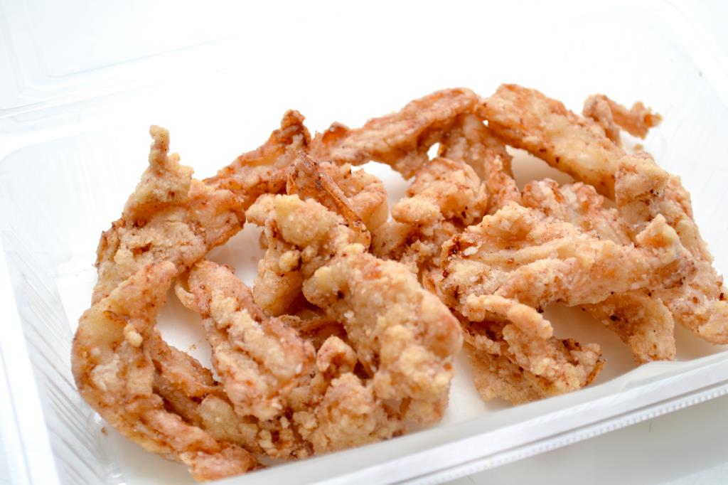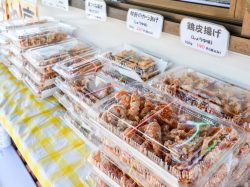 ・鶏のからあげ にんにくしょうゆ味(100g) 218円 ・鶏のからあげ しょうゆ味(100g) 218円 ・鶏のからあげ ピリ辛しょうゆ味(100g) 218円 ・ヤゲン(なんこつ)揚げ、ひざなんこつ揚げ100gパツク 250円 ・とり皮揚げ100gパック 190円 ※すべて税込 |