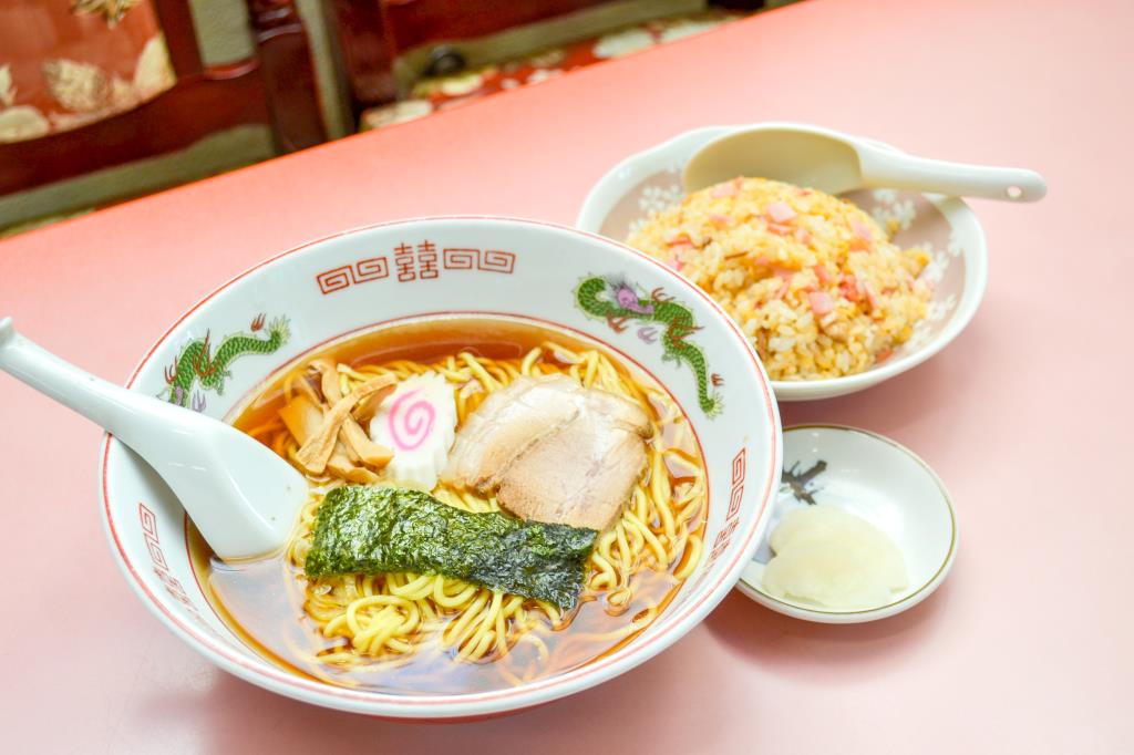 麺類は自家製麺を使用。中太麺がモチモチしていてラーメンのスープともよく絡む。お店一押しは五目焼きそば。常連さんにも人気の一品だ。プラス300円で半チャーハンか半ラーメンも付けれるので試してみては。