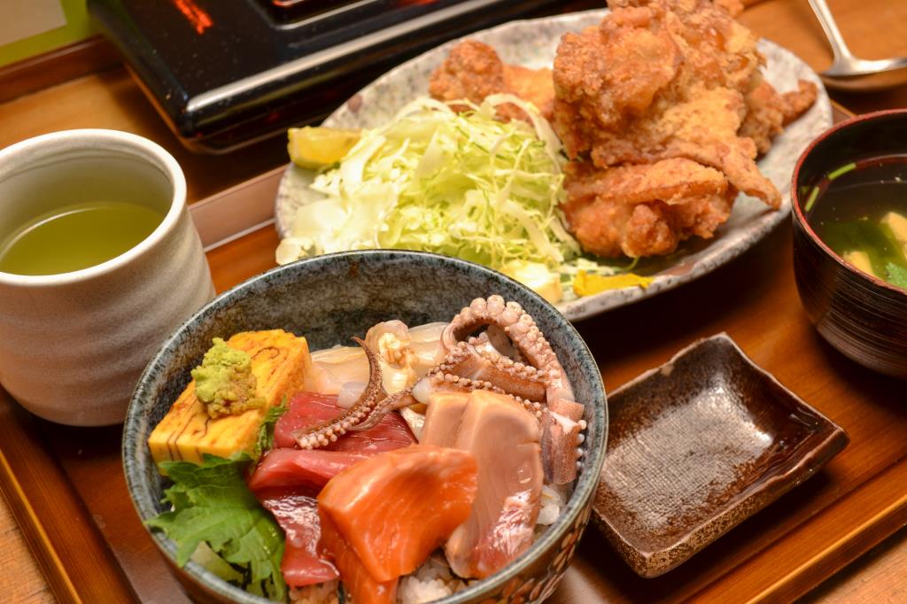 海鮮と鳥唐定食もオススメ。海鮮丼は様々なネタが丼に載っていて、それだけでも満足なのに自慢の鳥唐までついてくる満腹定食!どのメニューを試しても満足度の高い定食を召し上がれ!