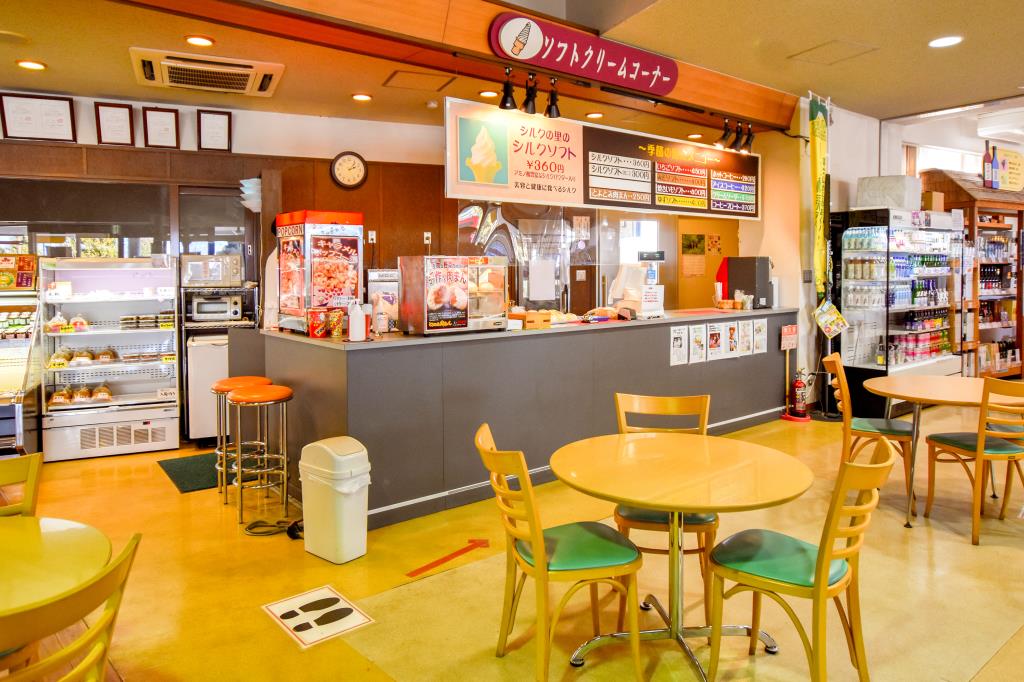 ・シルクソフト 360円 ・いちごソフト(春)450円 ・とうもろこしソフト(夏)400円 ・むらさき芋ソフト(秋)400円 ・しょうがソフト(冬)400円 ・とよとみ肉まん(冬~春)250円 ※全て税込 |