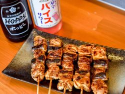アルコールは定番の他、カクテルも豊富!県内では珍しいホッピーやバイスを飲めるのも嬉しい♪地元の精肉店から仕入れる鶏肉をじっくり焼き上げ、自家製たれをたっぷり絡めたイチオシの焼き鳥との相性は言わずもがな!同じくおすすめの唐揚げと肉の種類を変えるなど、料理にもこだわりがたっぷり。