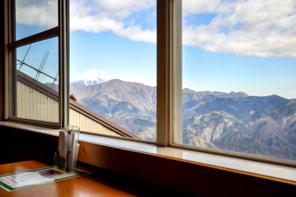 富士山や身延の街並、遠くには相模湾と、身延山山頂に位置するからこそ、その雄大な絶景が望める身延山ロープウェイ展望レストラン「身延庵」