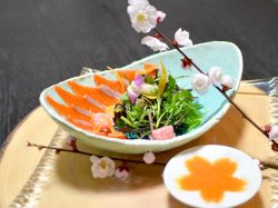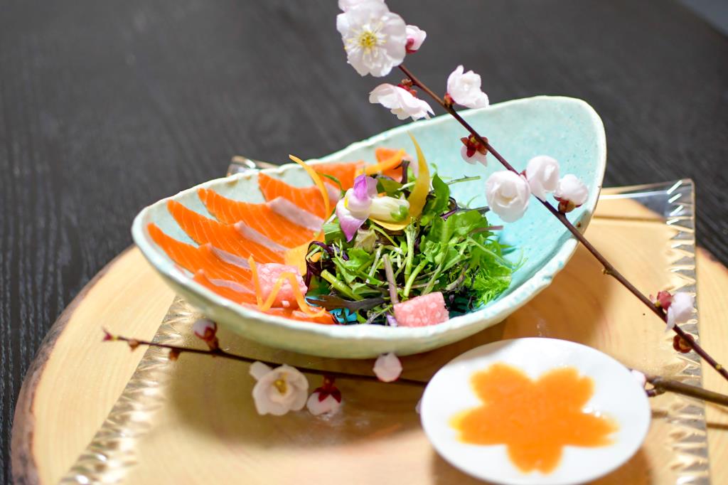 ご主人自ら地産地消の食材を中心に仕入れ・調理した料理は、四季折々を堪能する事ができる。また食材はその時々の一番良いモノを使用しているので、ご主人お任せのメニューも見逃せない。