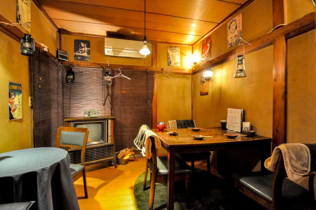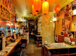 70~80年代の懐かしいレコードジャケット、ポスター、BGMが昭和レトロな雰囲気を醸し出す「赤ちょうちん」
