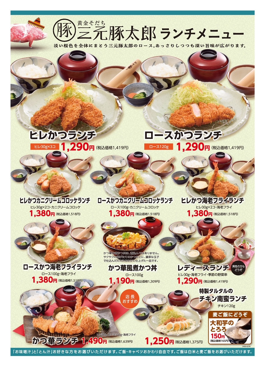 主なメニュー ・ロースかつ定食(120g)1,628円