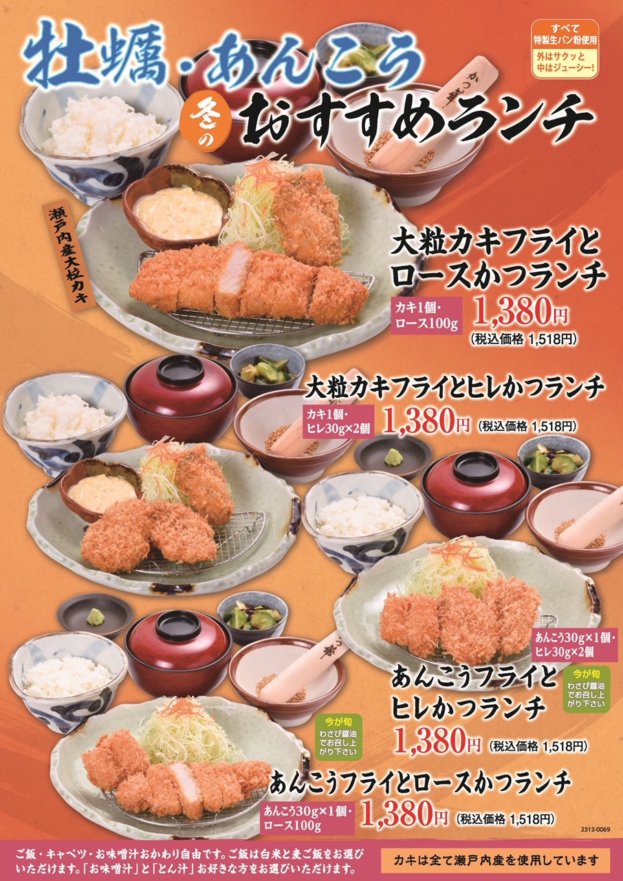 主なメニュー ・ロースかつ定食(120g)1,628円