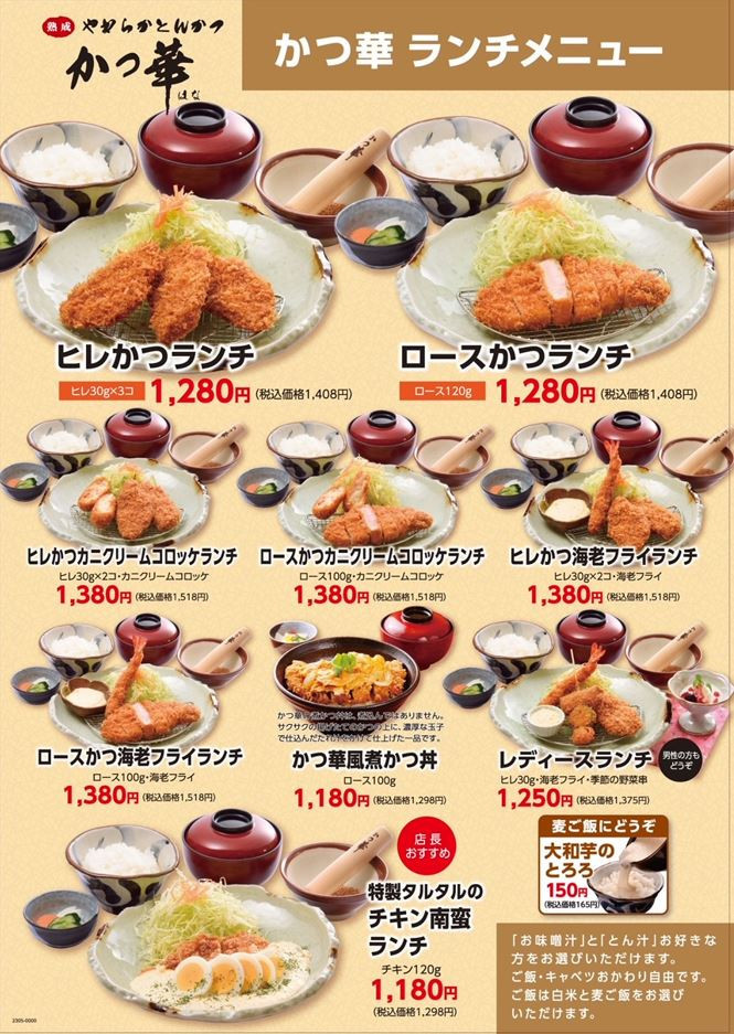 主なメニュー ・ロースかつ定食(120g)1,628円