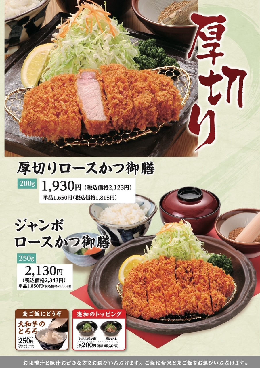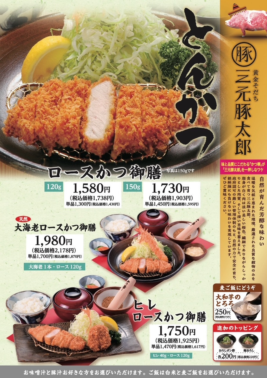 主なメニュー ・ロースかつ定食(120g)1,628円