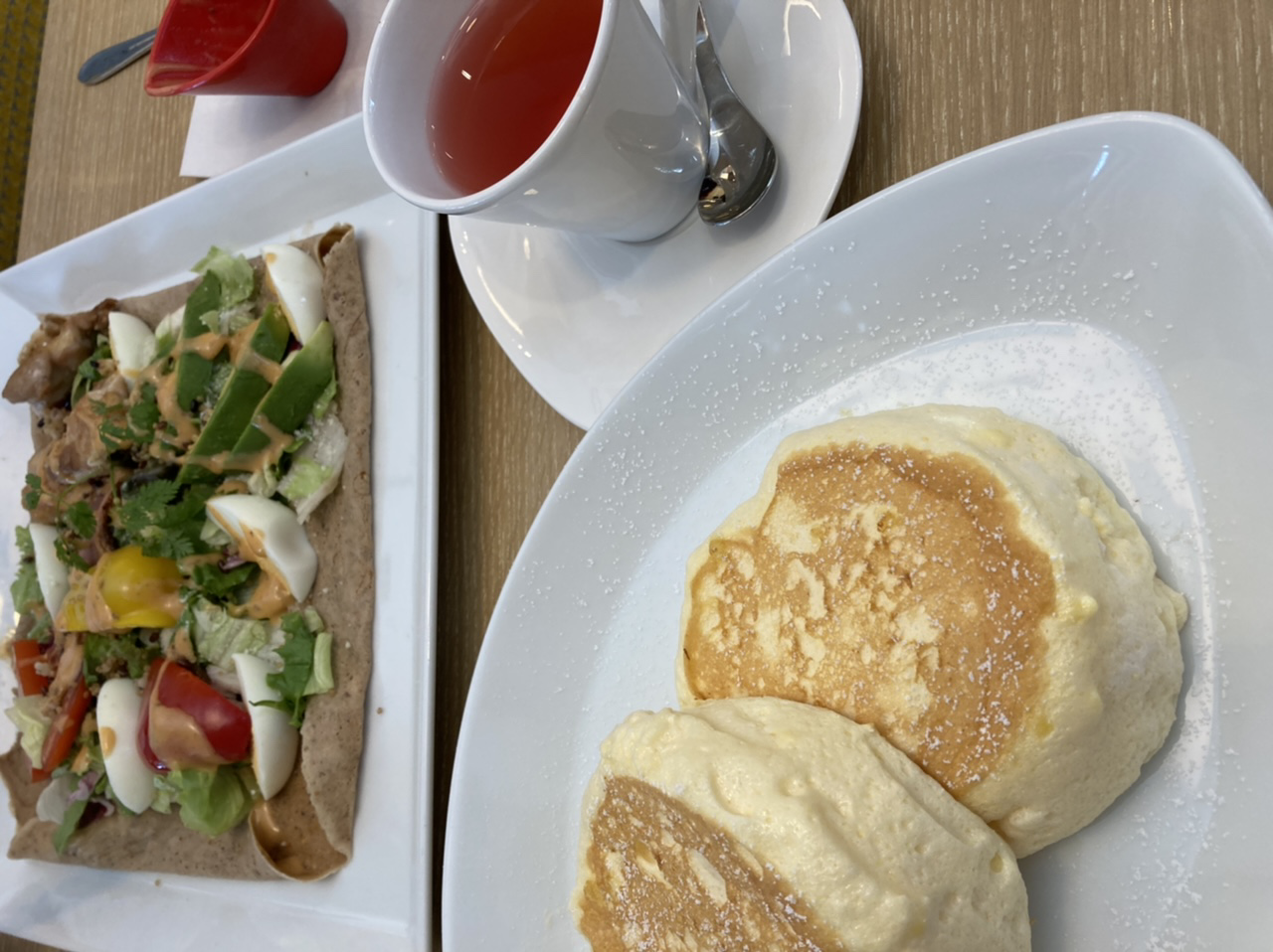 パンケーキがふわっふわでとっても美味しいです!!ガレットとお茶漬けも注文しましたが普通のファミレスよりおしゃれなメニューが多く、とても魅力的でした。