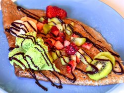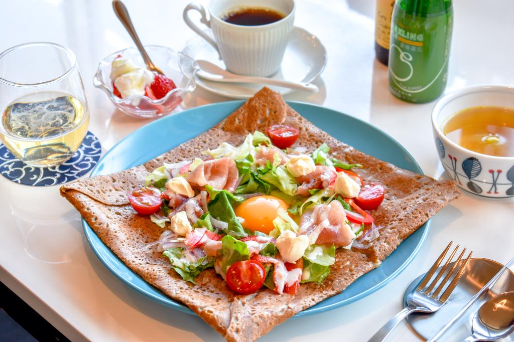 ガレットとはフランスのブルターニュ地方発祥で、フランス語で”平たくて丸いもの”という意味。元お蕎麦屋さんなだけあり、使用する蕎麦粉は国産100%!