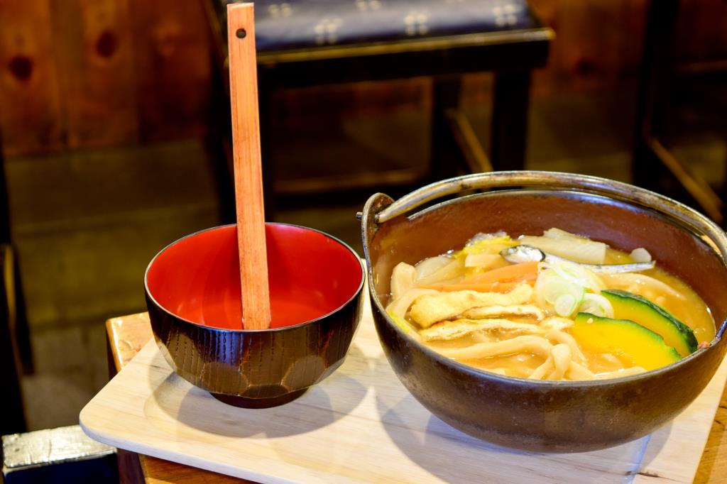 甲州味噌は香りがとても良く、塩気が淡いため程よい味わいの一杯を演出させる。もうひとつの看板メニュー「おざら」もおすすめ。ほうとうの麺を茹でて冷やし、醤油味の温かいつゆでいただくシンプルなメニュー。