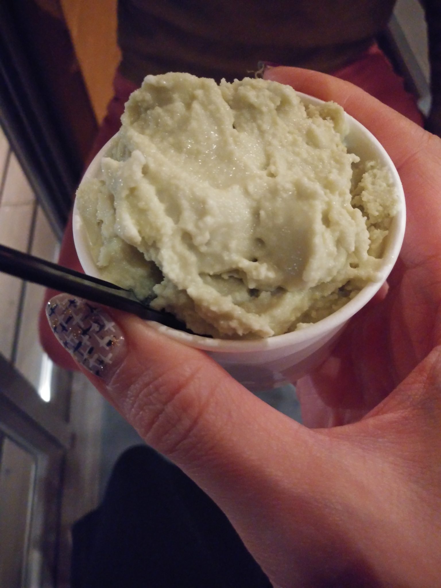 金曜日は夜中まで営業しています。ジェラートを食べたのですが、ピスタチオ、バナナ、あともう一種類あったと思います(^-^;