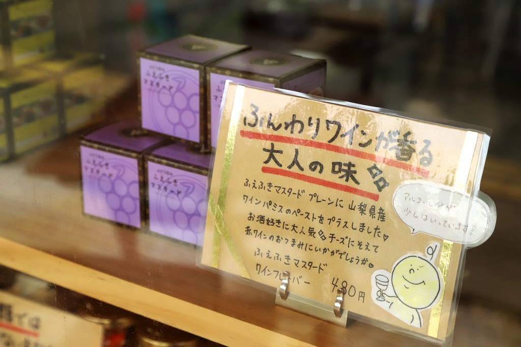 2021年ふえふきマスタード初のアンテナショップとしてオープンした笛吹店が、石和源泉足湯ひろばに移転しリニューアルオープン。