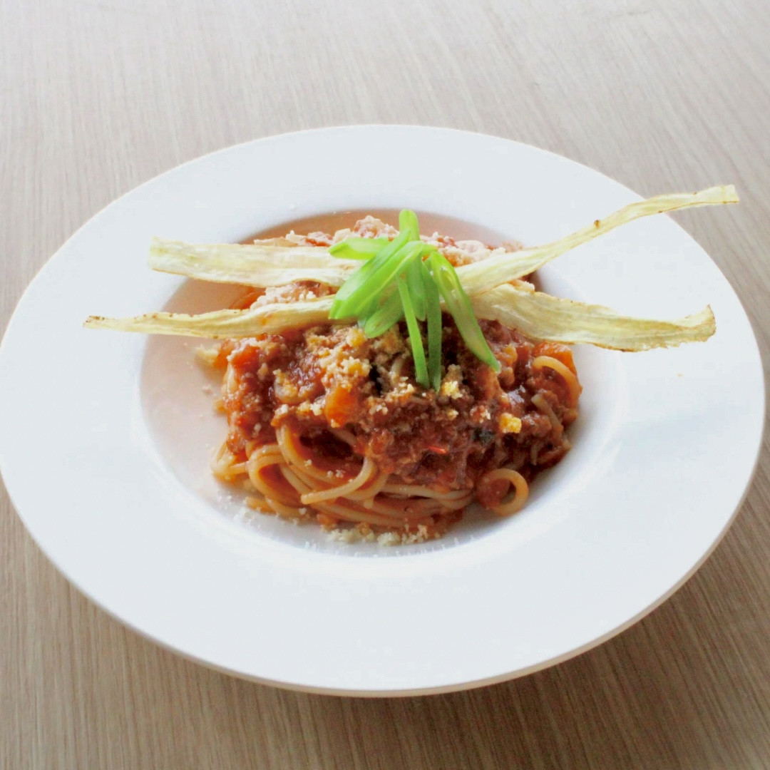 富士桜ポークと新ゴボウのアラビアータパスタ