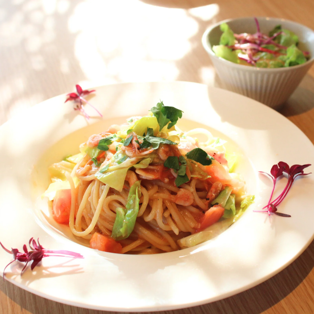 春キャベツと桜エビのフレッシュトマトのパスタ