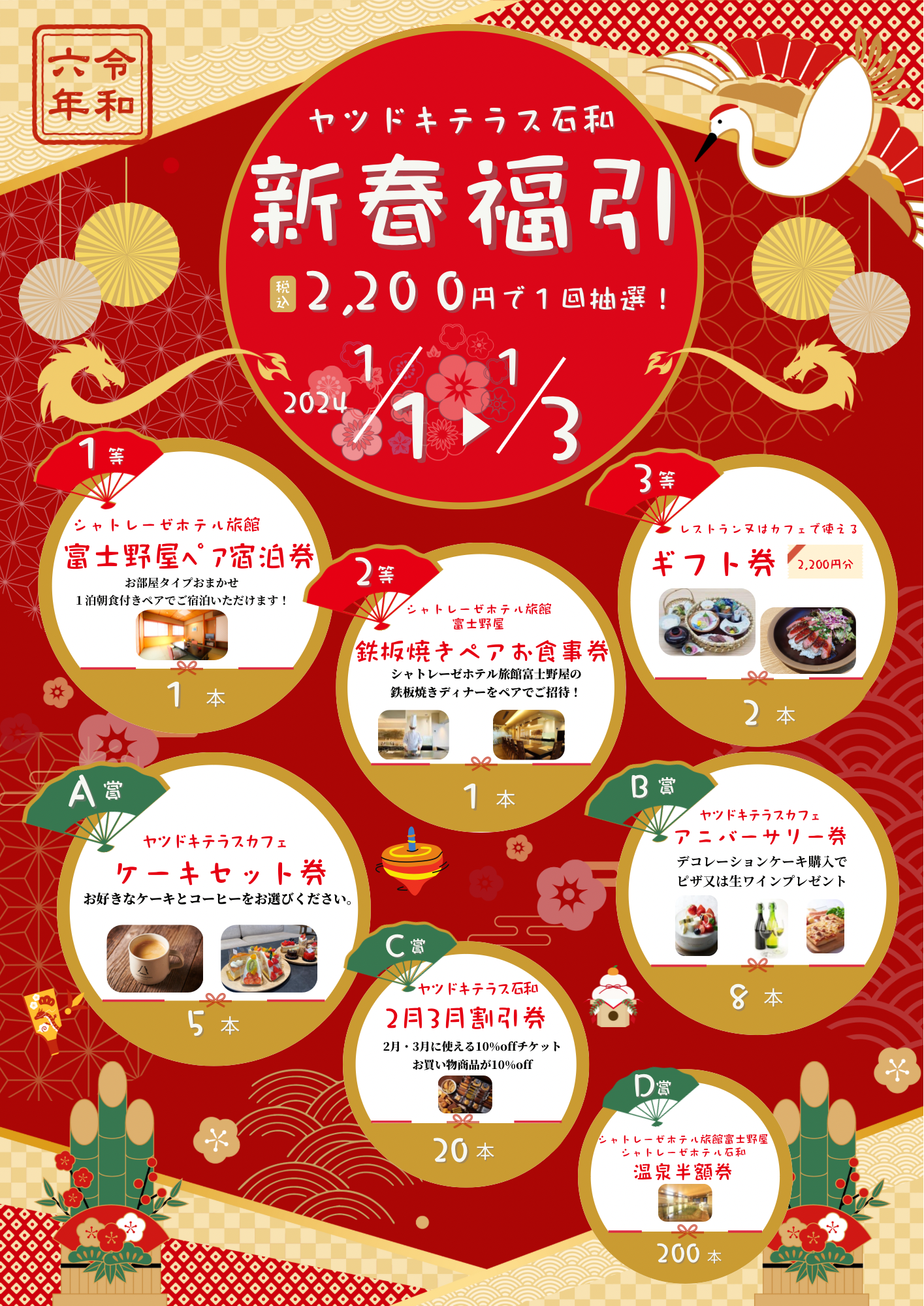 《新春福引》 新年早々、楽しいイベントを開催します! ━━━━━━━━━━━━━━━ 2024年1月1日(月)〜3日(水) ¥2,200(税込)お買い上げで1回抽選 ━━━━━━━━━━━━...