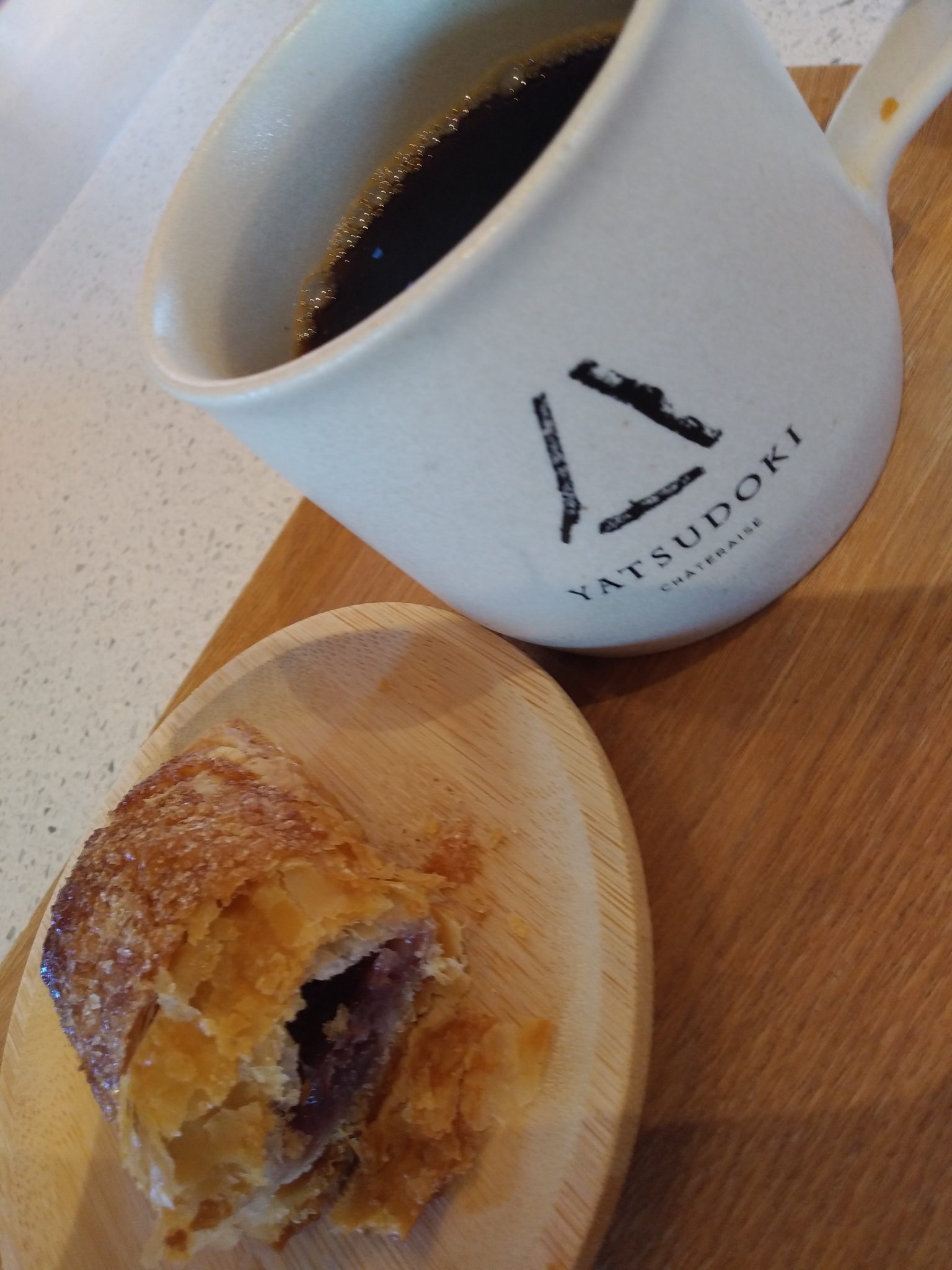 こちらのお店は、テイクアウトもイートインもどちらも利用できるので嬉しいです。その場で焼いているアップルパイやマロンパイがいつも気になっていました。マロンパイを購入。中には渋皮の付いた大きい栗がいくつか入っていて、水分少な目の餡入りでした。栗の食べ応え、餡の感じも美味しかったです。パイがサクサクでした。