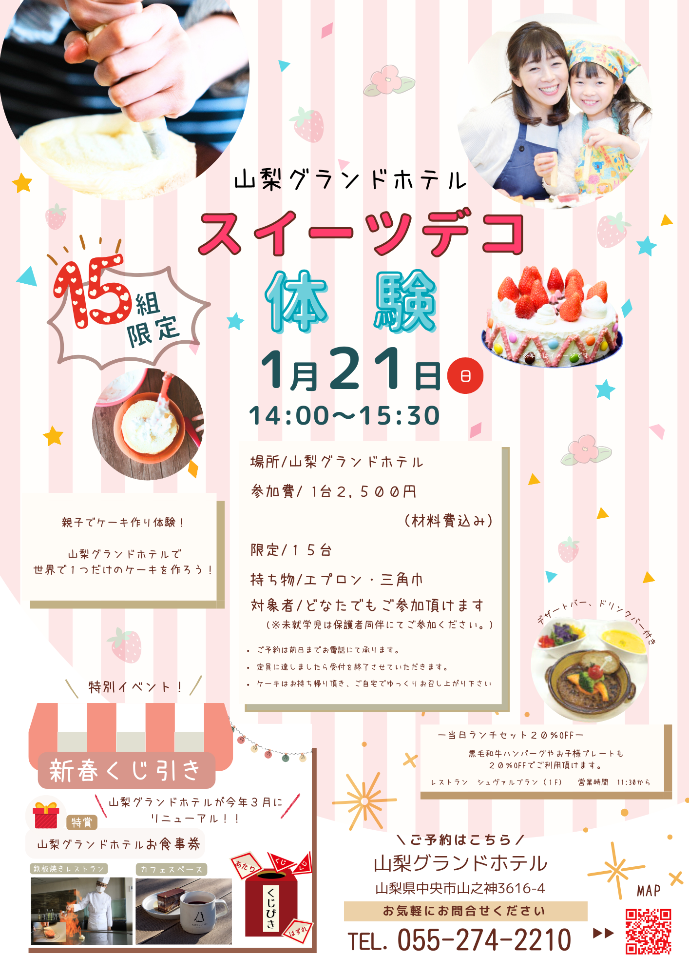 🌟🎄メリークリスマス🌟 いつも当店をご利用いただきありがとうございます🥰 新年、山梨グランドホテルにて  ❤🍰🍓スイーツデコ体験🍓🍰❤ イベント開催します! 毎回ご好評いただいている...