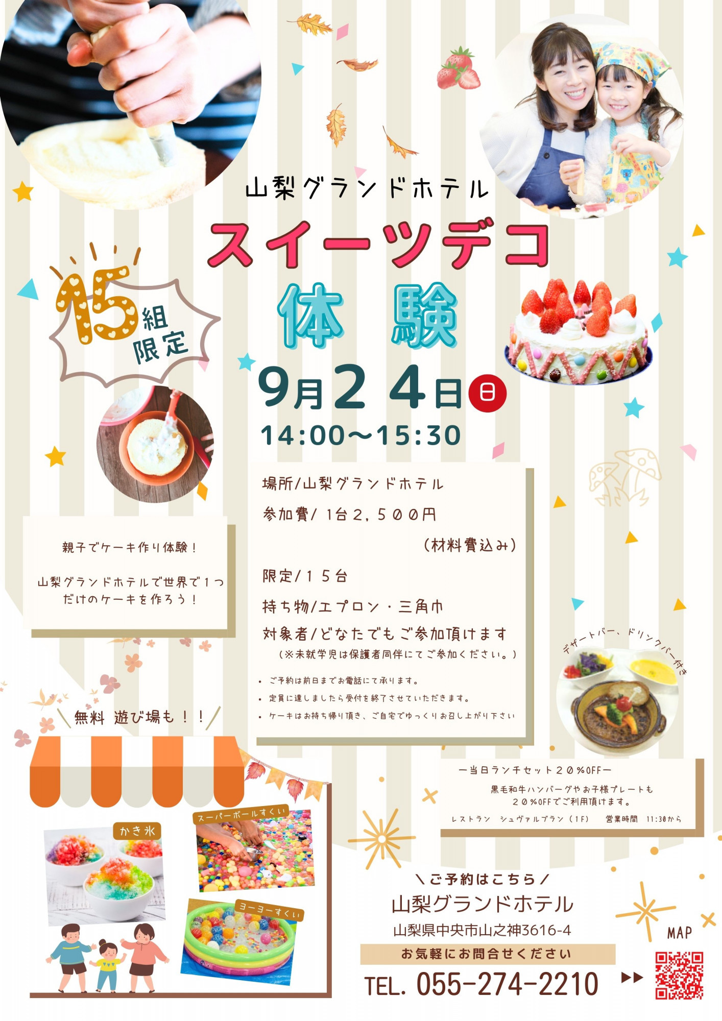 山梨グランドホテルにて   ❤🍰🍓スイーツデコ体験🍓🍰❤ イベント開催します! 前回ご好評いただいたスイーツデコ体験、パワーアップして再登場です! 今回はかき氷や、スーパーボールすくい...