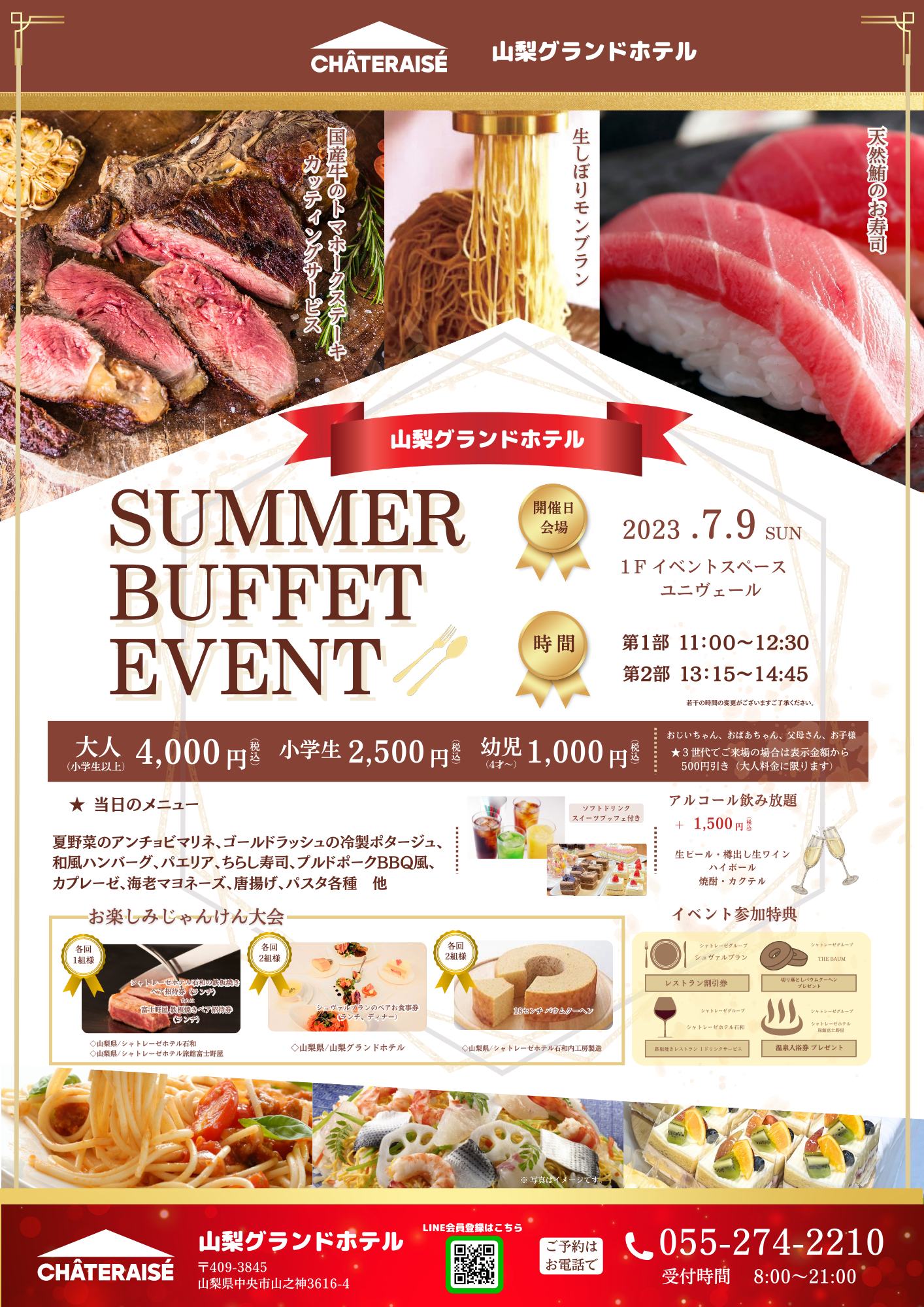こんにちは😊 いつも当店をご利用いただき誠にありがとうございます✨ 山梨も梅雨入りしましたが、皆様いかがお過ごしでしょうか? 本日は、来月開催の 「サマーブッフェイベント」のお知らせです📢 ...