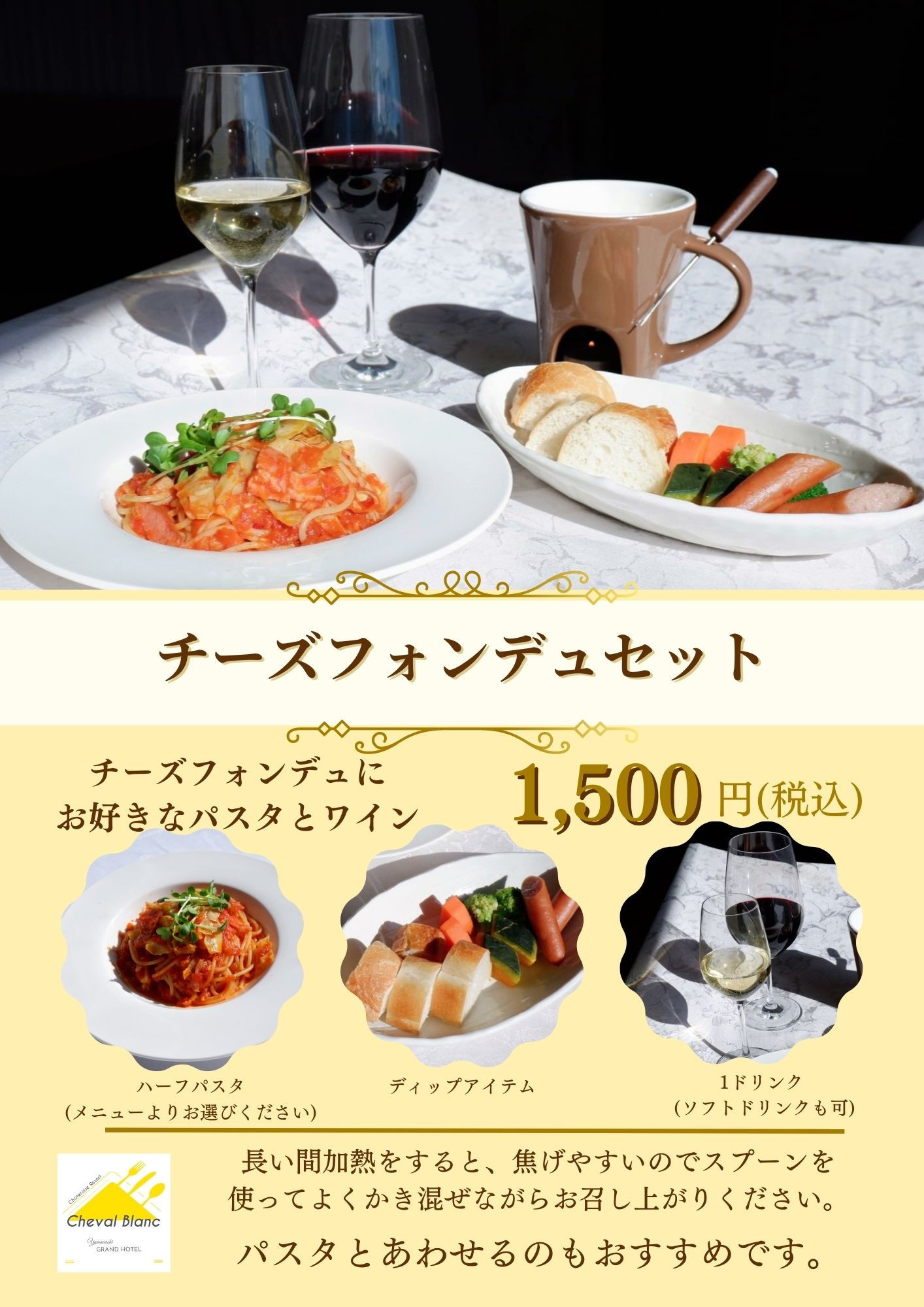 チーズフォンデュ+お好きなパスタにお好きな1ドリンクをお付けして