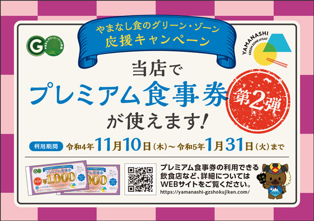 「やまなしプレミアム食事券」