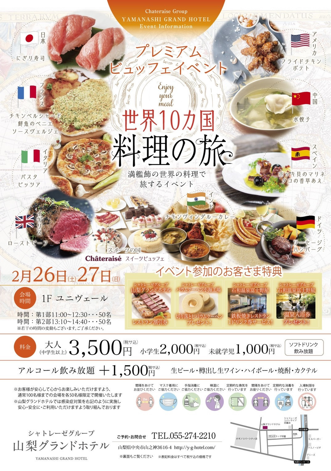 2月のプレミアムビュッフェイベントは 『世界10ヵ国料理の旅』です🛫!! 気軽に旅行も難しい今だからこそ、 ビュッフェで世界の料理を是非お楽しみ下さい🍽🍖 2月26日(土)・27日(日)そ...