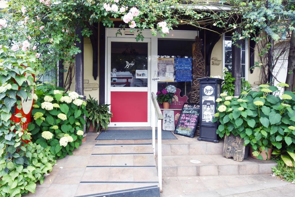 大月駅の目の前にあり、素敵な音楽と四季折々の鮮やかな花で出迎えてくれる月café。