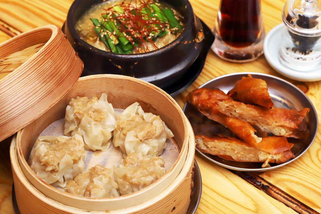 看板メニューの焼売は一つ一つ手作りで包まれ、蒸すとモチモチ、揚げるとカリカリ、炊くと味がしっかりと染み込む。焼売の他にも40種類以上のフードメニューに、豊富なドリンクメニューが揃う。