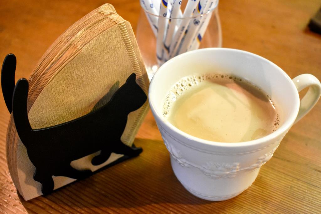 ふらっと立ち寄った方や電車待ちの方にくつろいでもらえる喫茶店にしたい…という店主さん。心地よい音楽が流れる店内でまろやかな口当たりの深入りブレンドコーヒーを飲みながら雑談するもよし、本棚に並ぶ本をお供にするもよし。