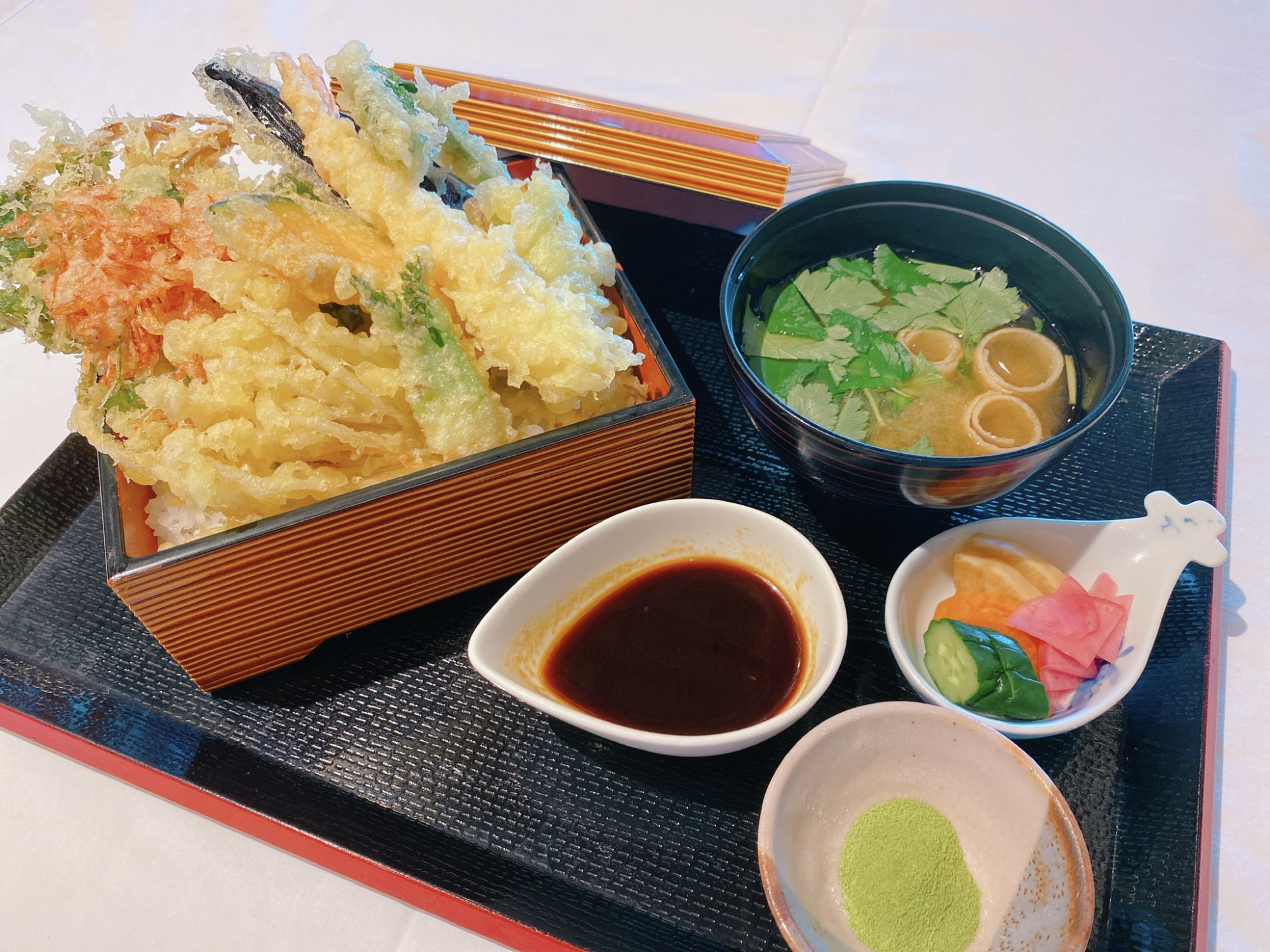 今月は天重をご用意致しました。季節の野菜と海老の天重です。11:00から20:30までいつでも営業中です。ぜひお越しください。