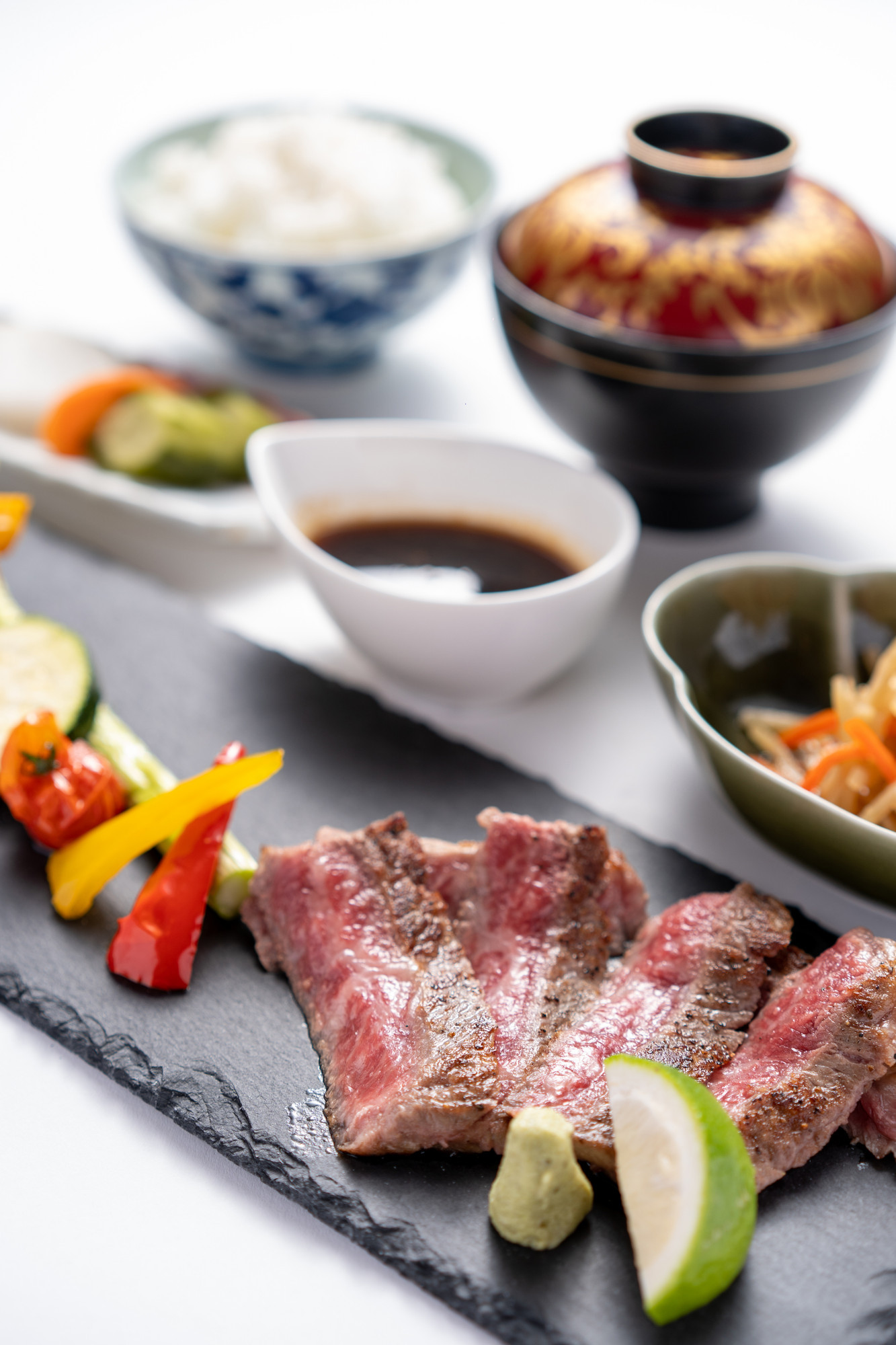 ・甲州ワインビーフサーロインのディナー6,000円(前菜盛合せ/焼き野菜/甲州ワインビーフサーロイン150g/ご飯/味噌汁/香の物/デザート/コーヒーまたは紅茶)