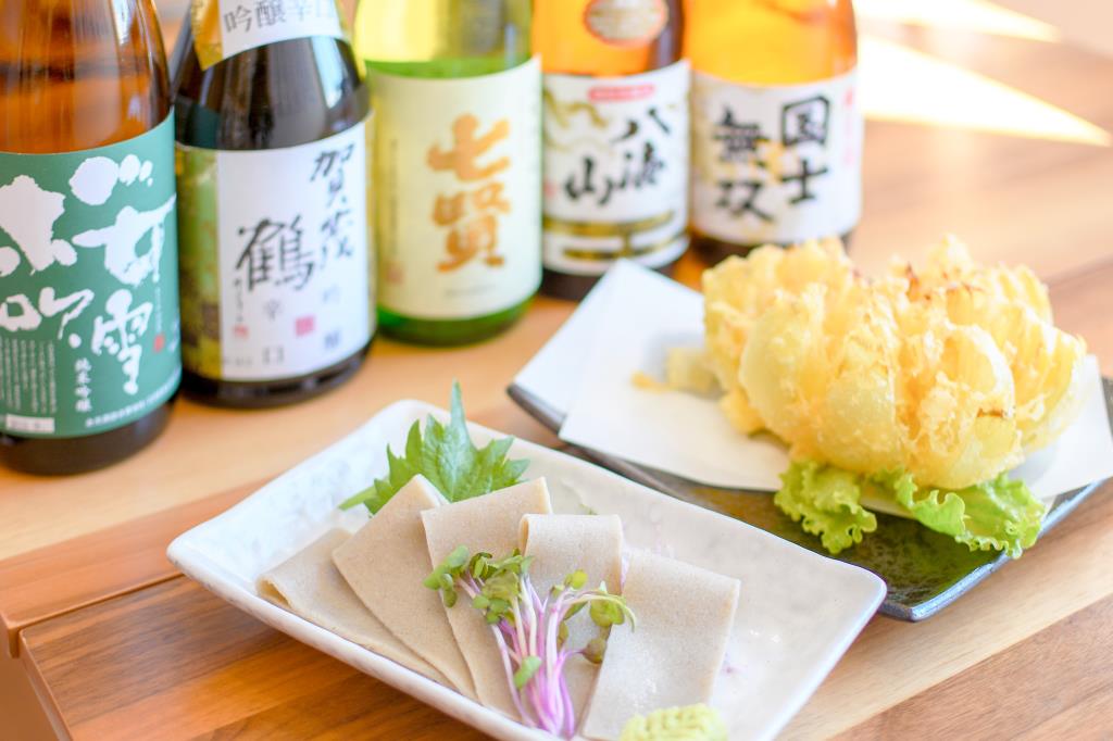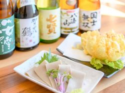 夜は居酒屋としても利用でき、全て手作りにこだわった一品料理や広島の日本酒を中心とした珍しい地酒も楽しめる。