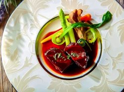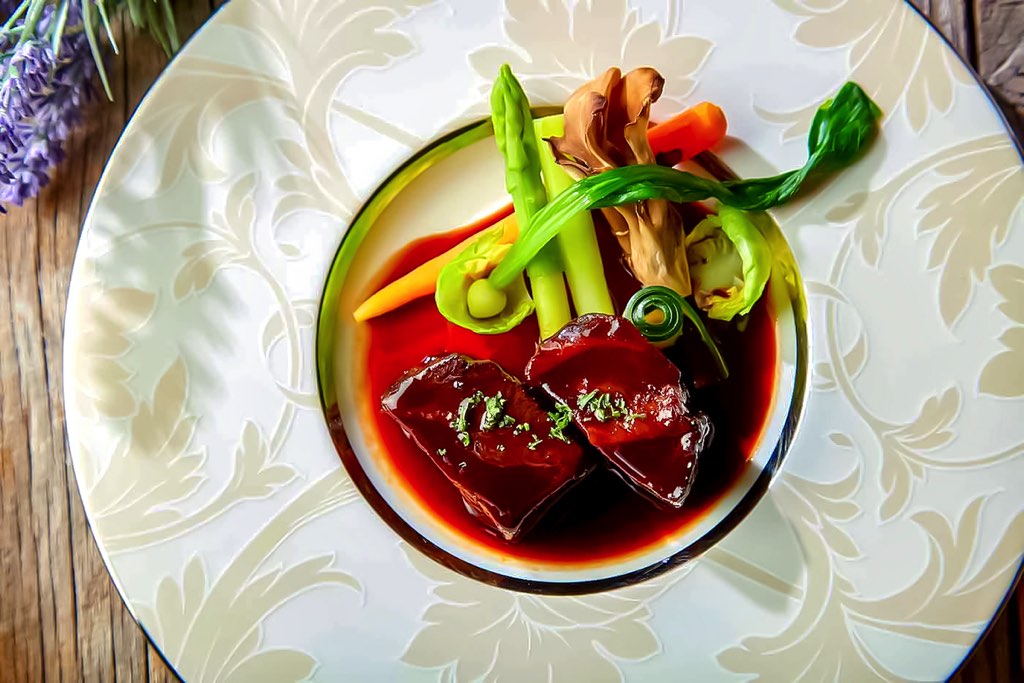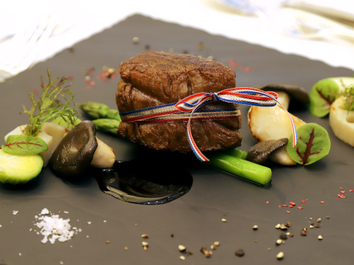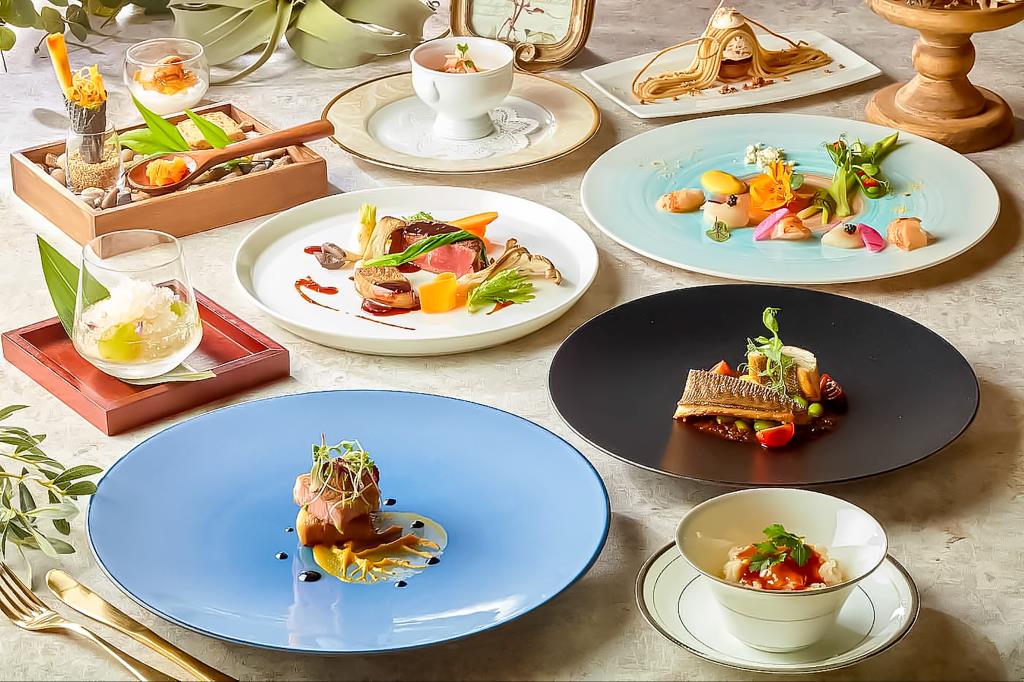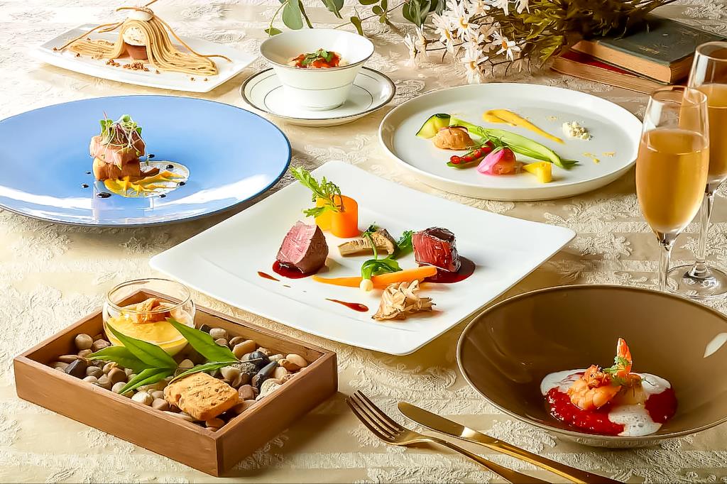 都内の老舗フレンチをはじめ、山梨の歴史あるホテルで長年腕を磨き続けた有泉シェフが手掛ける素材の持ち味を最大限に生かしたコース料理を味わえる。