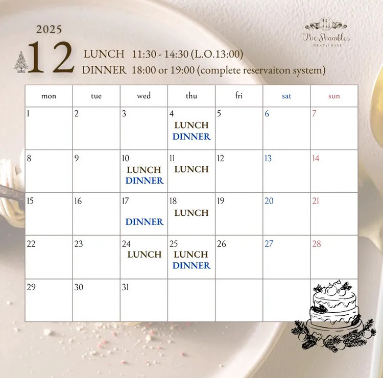 12月10日(水) LUNCH 11:30~or13:00~ / DINNER