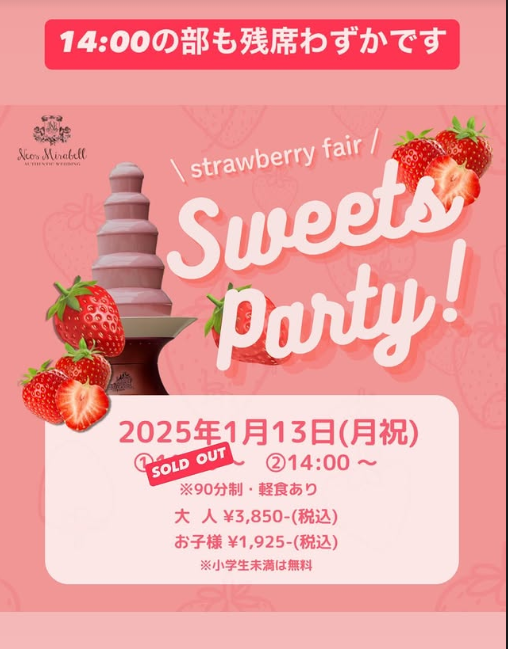 ミラベルの料理長とパティシエの コラボレーションで織りなす スイーツイベントを開催いたします🍰✨ 【開催日】 2025年1月13日(月祝) ①11:00〜完売御礼!/②14:00〜  ...