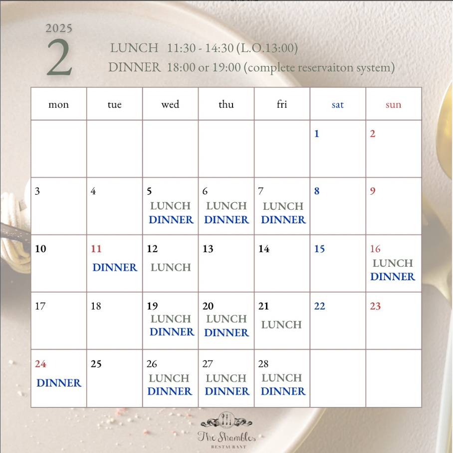 ディナーは完全予約制です。 お時間は2部制となっております。 お誕生日や結婚記念日等でご利用の際は、 メッセージプレートのご対応もいたしますので スタッフまでお気軽にお申し付けくださいませ...