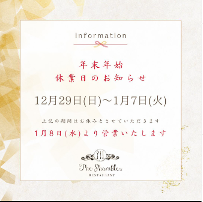 ≪年末年始の営業日のお知らせです。≫